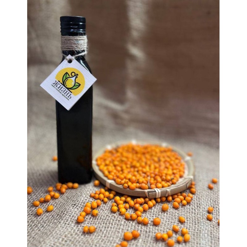 Данное облепиховое масло «ЖИЗНЬ» приготовлено следующим способом: высушенная облепиха залита свежеотжатым маслом грецкого ореха и настояна 21-30 дней. Данный способ является уникальным! Ведь чисто из облепихи и из ее косточек масло не давится. А данный способ приготовления позволяет получить двойной эффект: польза и масла грецкого ореха и настойка на облепихе!