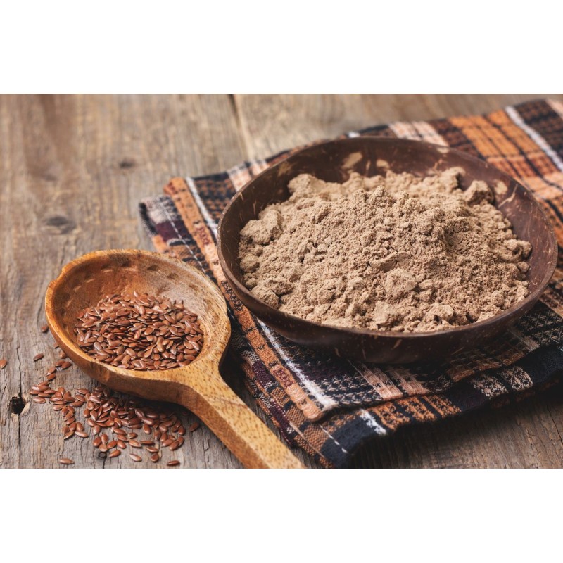 – продукт, получаемый путём переработки семян льна. Для получения сухой сыпучей массы, семечки не только перемалывают, но и обезжиривают, чтобы убрать из состава льняное масло. На вид льняная мука серовато-коричневого цвета, ярко выраженного аромата нет. На вкус продукт отличается тонкими приятными злаковыми нотками. Мука из льняных зёрен подходит в качестве основы для выпечки и других блюд